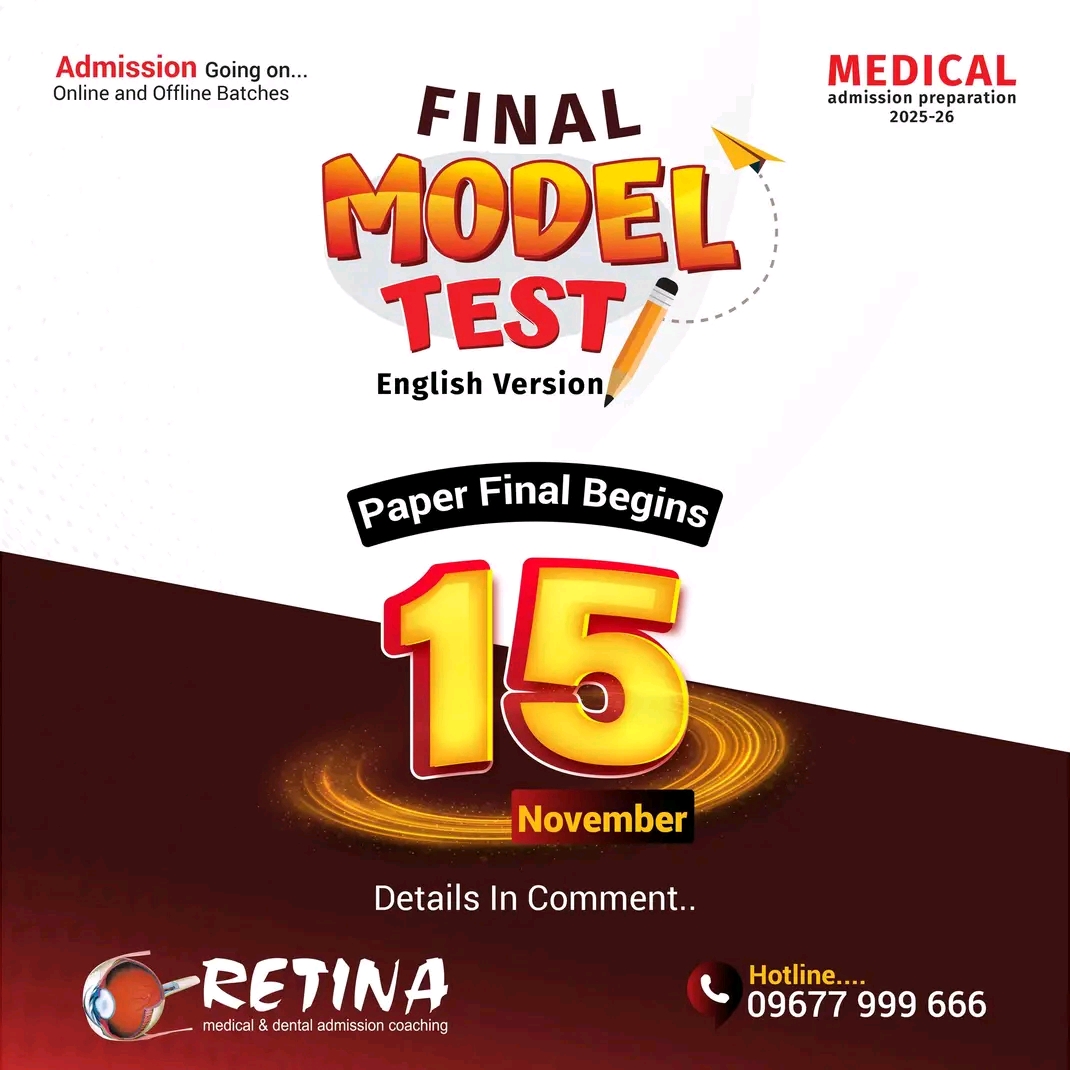 মেডিকেল ভর্তি প্রস্তুতি ’২৬ প্রোগ্রামে ভর্তি হলে “HSC’২৬ ফাইনাল মডেল টেস্ট প্রোগ্রাম” এবং “প্রি-মেডিকেল কোর্স (রেকর্ড)” সম্পূর্ণ ফ্রি।